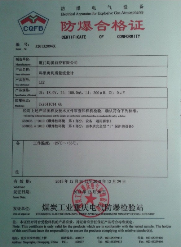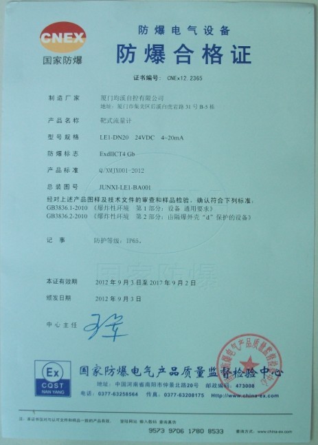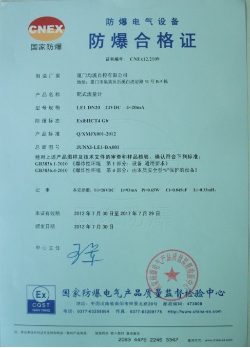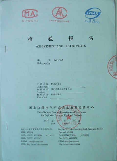 靶式流量計(jì)本安型檢驗(yàn)報(bào)告