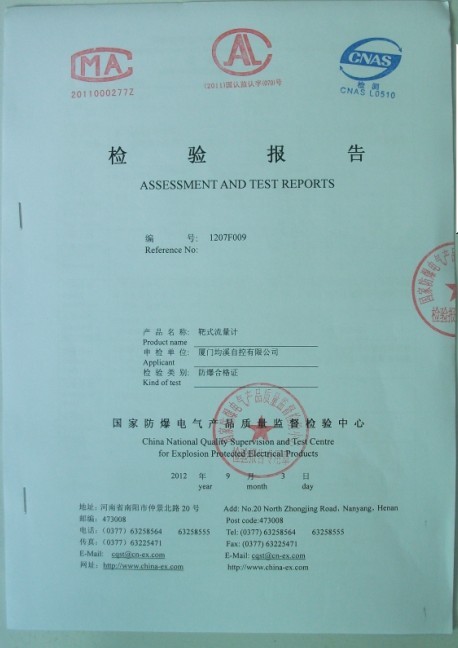 靶式流量計(jì)隔爆型檢驗(yàn)報(bào)告