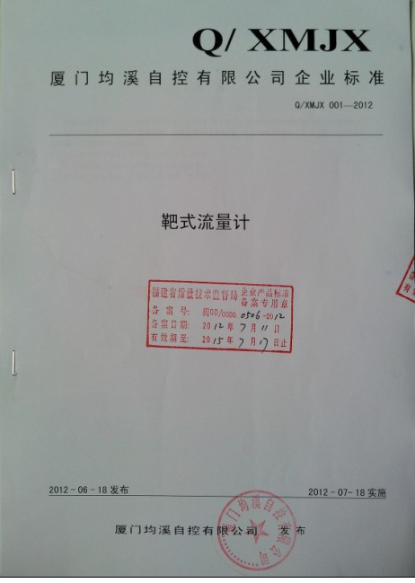 靶式流量計(jì)企業(yè)標(biāo)準(zhǔn)